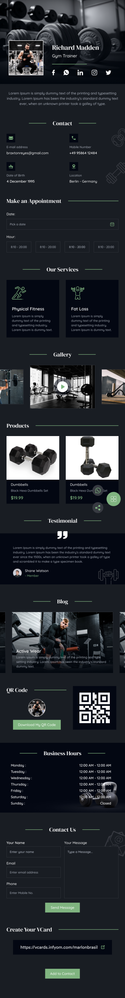 Spor Salonu Eğitmeni vCard